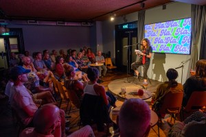 Ik heb daar vaker voorgelezen en het is een aanrader om te komen. Het is een avond met comedy, live muziek en snoep, en het is er altijd heel gezellig.